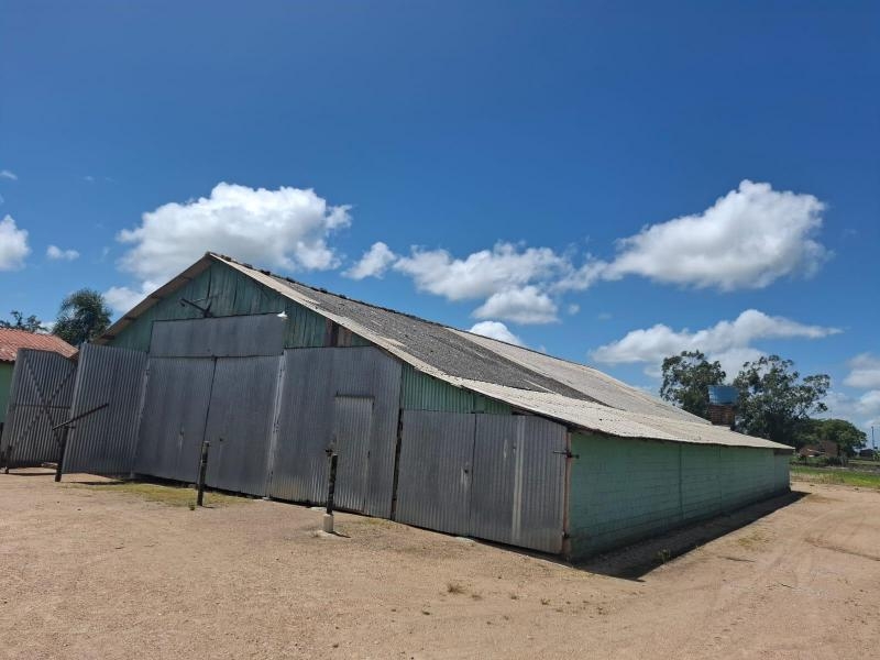 Galpão de madeira com espaço para maquinas agrícolas de grande porte.